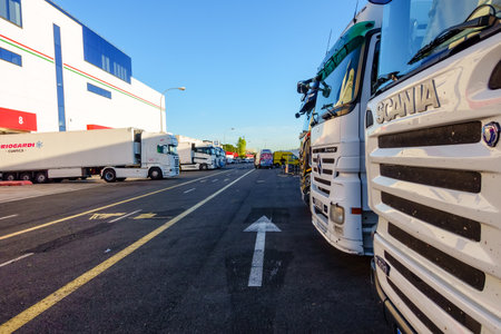 Mercamadrid, Madrid, Spain - June 7, 2022: trucks unloading at madrids central fruit market.