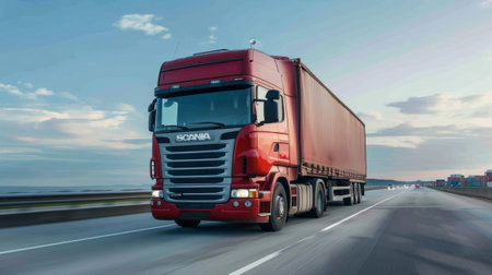 Sosnowiec, Poland -28.10.2021- trucks driving on the road in Sosnowiec