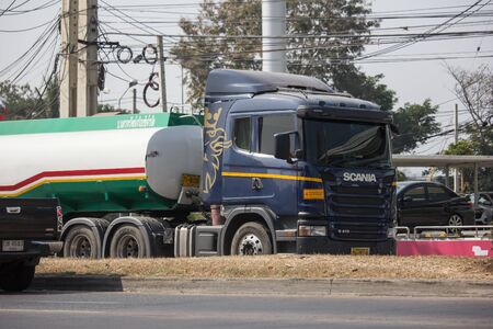 Chiangmai, Thailand - January 21 2020: Molasses Tank Truck of NAKRONSUB Company. On Truck on road no.1001, 8 km from Chiangmai city.