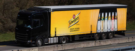 wilnsdorf, North Rhine-Westphalia/germany - 06 04 2020: schweppes truck near wilnsdorf germany