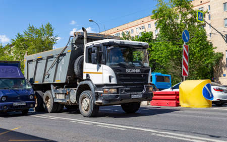 Truck rides on the street in city (summer sunny day). Moscow, Russia