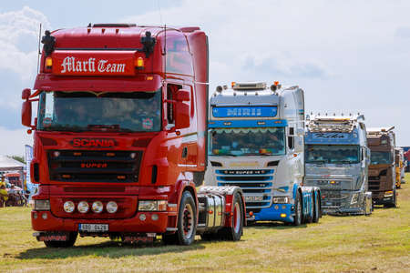 Skutech, Czech Republic, 26 June 2020: Truck Show. Transport festival in the Czech Republic. Truck Fest weekend with kids. Truckers charity event for children.