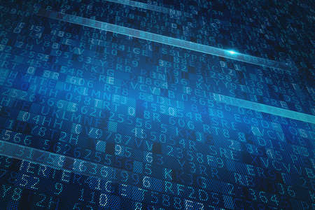 Digital data hex code symbols. Abstract information technology background. Computer generated raster illustration rendered with DOF