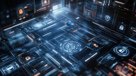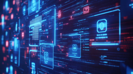 Data Security system Shield Protection Verification concept with computer halogram scanning on data of business and all technology