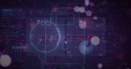 Image of warning data processing, online security padlock and circuit board. global online security, computing, data processing and technology concept digitally generated image.
