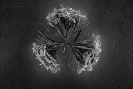 This macro photograph captures intricate textured plant structures arranged against a dark background, showcasing the beauty of nature in detail.