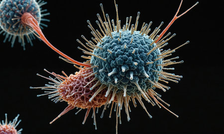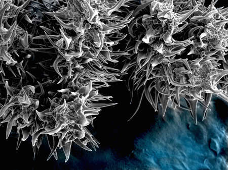 Detailed dendritic cell with numerous protrusions emanates a sense of medical wonder and scientific discovery perfect for educational or research materials.