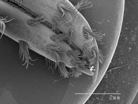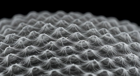 Microscopic image of a nanostructured adhesive surface, demonstrating strong bonding capabilities inspired by nature.