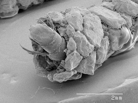 Iron oxide formations with sulphur and chlorine present, imaged with a scanning electron microscope