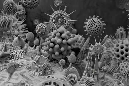 The intricate patterns and shapes of microscopic bacteria --ar 3:2 Job ID: f0e27ed7-b476-4c41-9d6e-39b6972f1128