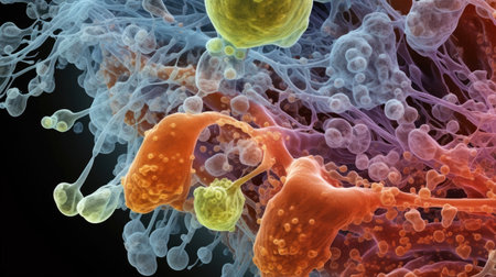 Colorful microorganism cells close up. illustration in high details for medical education and science. ai generative.