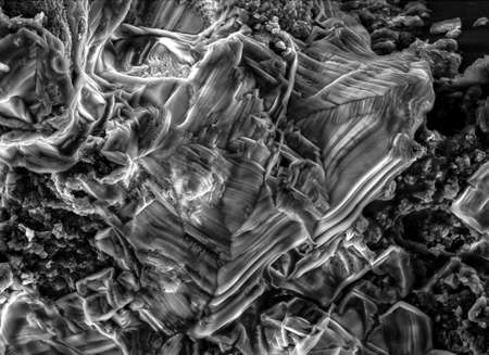 Scanning electron micrograph image of iron oxide formations with chlorine and sulphur present