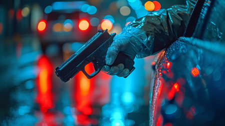 the driver takes the gun from the passenger compartment of the car. Gangster or policeman