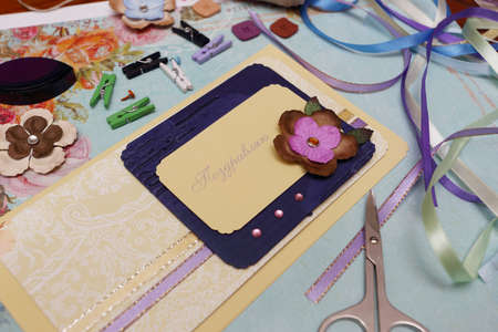 scrapbook background. Card and tools with decoration
