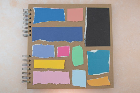 Coloured square paper on brown paper scrapbook. Copy space