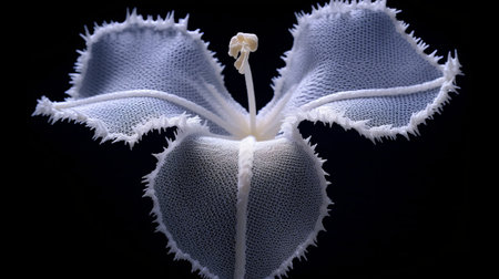 a close-up portrait photograph showcasing the intricate details of unknown escherichia coli biological virus alien flowers. the image captures the brittle yet beautiful essence of these flowers, with dry and elegant petals. the rich and vivid contrast, along with the depth of field and black tones, creates a crisp and realistic depiction. shot on a 100mm lens with an aperture of f/2.0, the natural lighting