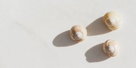 Banner featuring contrasting empty space framed by delicate snail shells creating a serene visual effect