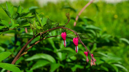 Pacific or Wild Bleeding Heart, Dicentra Formosa, flowers on stem with bokeh background, macro, selective focus, shallow DOF.