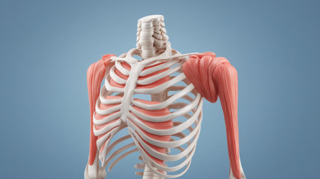 This image showcases the intricate details of human shoulder muscles with a striking red highlight, perfect for educational and fitness-related projects.