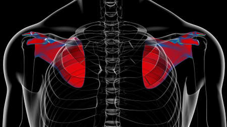 This 3d illustration shows the supraspinatus muscles on white background
