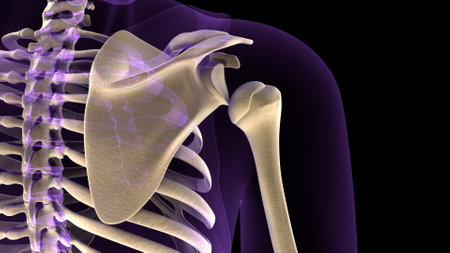 Explore the intricate structure of the human shoulder complex, featuring detailed anatomical bones displayed against a black background for educational and scientific use.