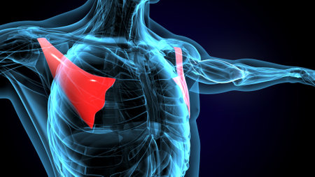 This 3d illustration shows the pectoralis major muscle movement