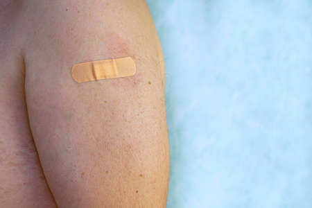 Monkeypox and smallpox vaccine scar on human shoulder of the paitence