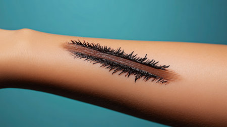 This image captures a close-up view of an intricate body art design on a smooth arm, showcasing a striking contrast against a vibrant background.