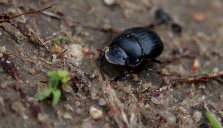 Dung beetle in the forest in the macro