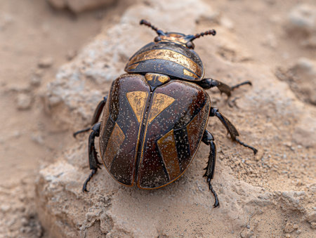 This stunning close-up image showcases a colorful beetle with intricate patterns and textures, highlighting the beauty and diversity of nature's designs.