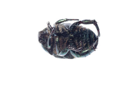 Close up of blue beetle isolated on white background. Macro shot.