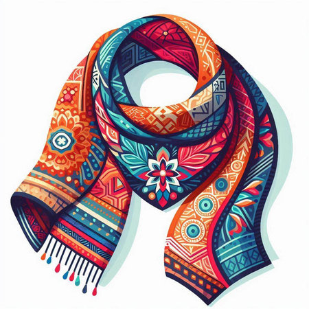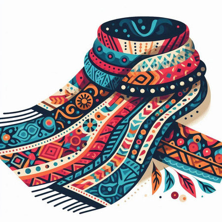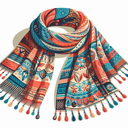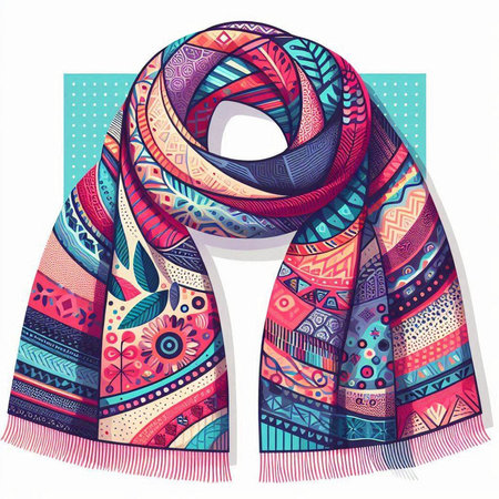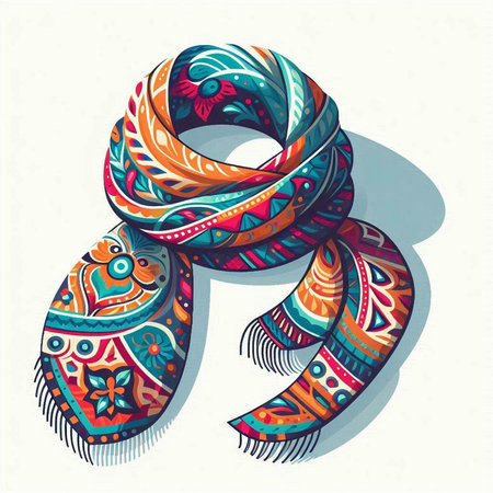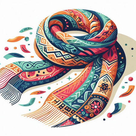 Vector illustration of a colorful hand-drawn scarf with ornaments