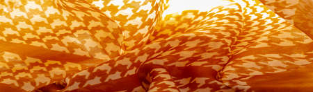 Silk brown with floral print and rhombuses. Soft fabric, glossy texture background, satin background, fabric luxury work, elegant pattern, colorful abstract, colorful velvet, macro shredded.