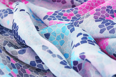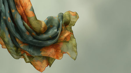 A beautiful scarf features a delicate floral pattern, elegantly draped against a soft background. This image captures the essence of fashion and style, making it perfect for various creative projects.