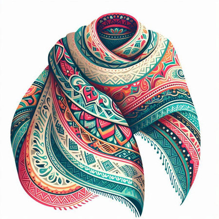 Vector colorful scarf isolated on white background. Hand drawn illustration in ethnic style.