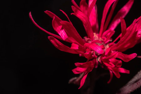 Back-lit loropetalum chinense var. rubrum at sunset display great warm color with amazing flares.