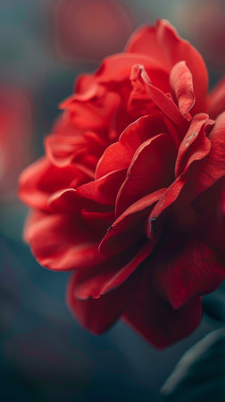 The bloom of a beautiful red dahlia as a macro shot. The focus drops from left to right