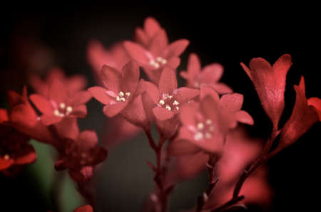 Natural background and texture. Soft focus image of small flowers of aurinia saxatilis in a dramatic red tone