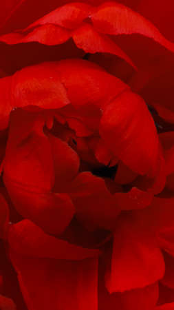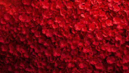 Background of red rose petals. Love theme background. Holiday: St. Valentines Day. Passion concept. Red petals of roses abstract background. Shape of heart.