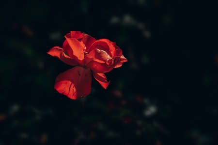 luxurious bouquet of large red roses close-up on a light background in the dark. low key photography, noir