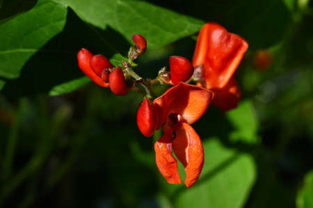 Macro shot of runner bean (phaseolus coccineus) flowers in bloom