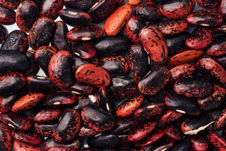 frame of many grains of dried beans top view, red beans texture, food background close up