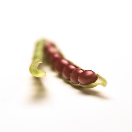 Ten beans of fresh raw garden vegetable red haricot vegetable. Isolated on white studio macro set