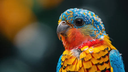 Stunning close-up of a rainbow lorikeet showcasing vibrant plumage and expressive eyes. This exotic bird captivates with its colorful feathers in a natural setting.