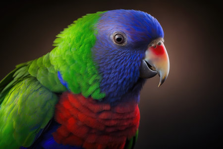 Rainbow lorikeet or parrot, Latin Trichoglossus haematodus, close-up from the side, AI generative content.