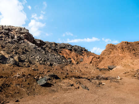 Closeup to red mulch mound lifted in the sky. Mars idea background