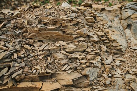 This close-up view shows a pile of rocks stacked on top of each other. The rocks vary in size and shape, creating a rugged and textured appearance.