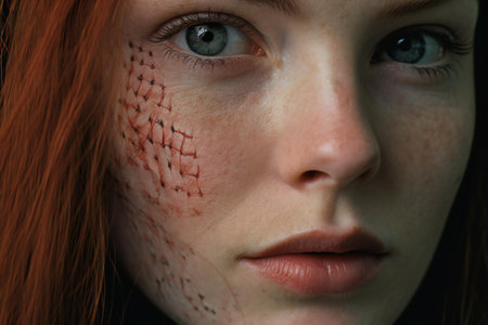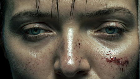 portrait of young woman with wounds on her face, domestic violence concept