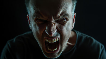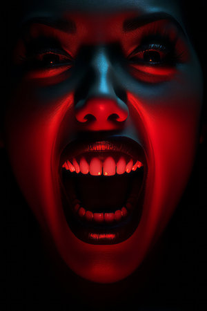 High-definition view of a screaming mouth with visible saliva and dynamic lighting for dramatic effect