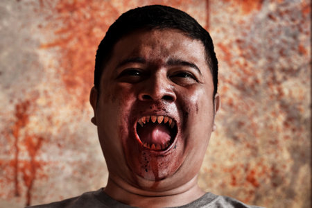 Umea, Norrland Sweden - October 23, 2020: cosplayer with sharp vampire teeth